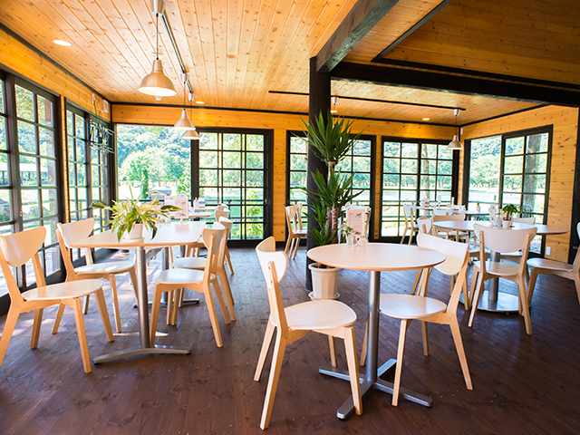 那須白河フォレストスプリングスのレストハウス内にある、森と泉のレストラン、FS Cafe。ポンド(池)を眺めながらのんびりとティータイム。そしてホームメイド感覚の本格ランチもお楽しみ頂けます。透明度が高い冷水で生育した鮮度抜群のトラウトを使った料理は、ここでしか味わえません。ボリューム満点で、しかもリーズナブルな価格設定です。釣りをなさらなくても、お食事だけのご利用も大歓迎です。